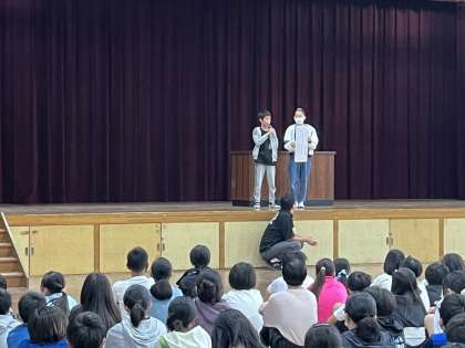 今年度初の人権集会が行われました。それぞれのクラスで考えた人権目標を発表しました。みんなが安心して楽しく過ごすためには一人一人の意識や思いやりが大切ですね。