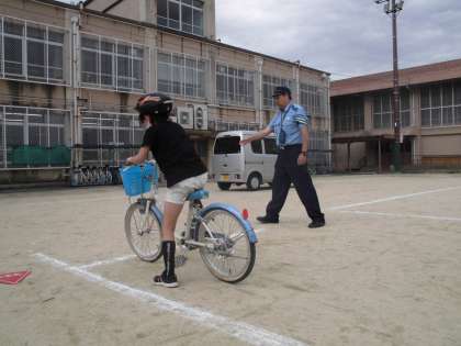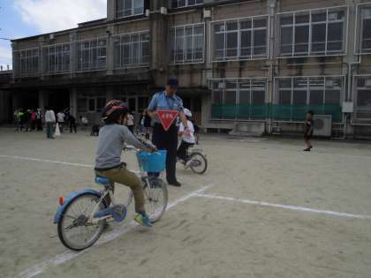 4年生では、山科警察署の警察官の方による「自転車安全教室」が実施されました。子どもたちは自転車の安全な乗り方について教えていただき、実技を通して技能を身に付けていきました。