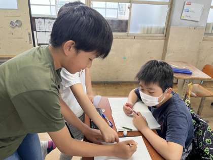 分数と整数のかけ算はどんな仕組みで計算できるのか。5年生での学習を生かして考えていくことができました。