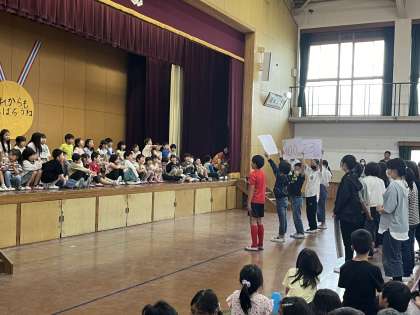 1年生に向けて、学校クイズを出しました!普段目にはしていても、意外と覚えていないことって多いですね。西野小学校にあるトーマスの顔や階段の段数などどれくらい正解できたかな。