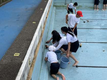 6年 体育「プール掃除」