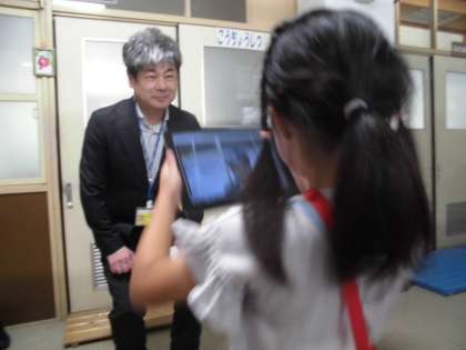 西野小学校にはたくさんの教職員がいます。1年生は先生の顔と名前を早く覚えるために、覚えたてのひらがなで名刺を作ったり、写真を撮ったりしました。