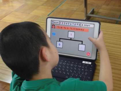 つくし学級では、タブレットを使って学習をしています。みんな意欲的に、ドリルをどんどん進めていきます!