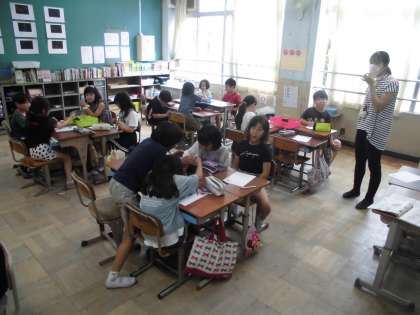 3年生が育てているホウセンカが、どんどん大きく育っています。今日は茎の高さや葉の形などを、じっくりと調べてみました。