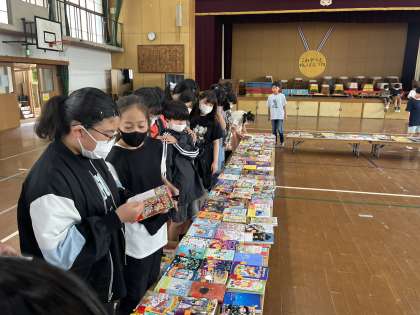 山科書店さんに来ていただき、選書会を行いました。様々なジャンルの本があり、実際に手に取って読む子やすごく悩んでいる子など、楽しい時間でした。みんなは自分の読みたい本とは出会えたかな?