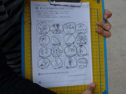 校庭や学校の周りで植物や動物などの生き物を見つけました。