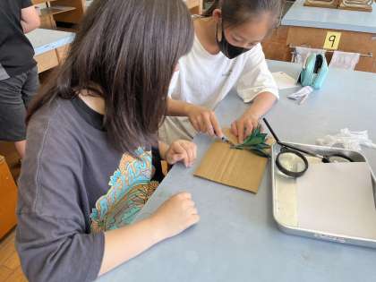 植物が育つには水が必要ですね。その水はどこを通って、どこまで吸収されているのだろうか…。断面を切っって調べていきました。はたして植物の中はどのような仕組みになっているのだろう…。