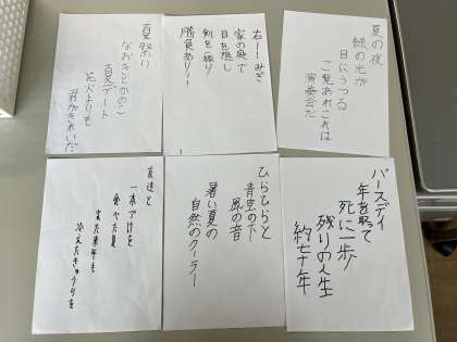 春に引き続き、夏のかんたんたんか大会が行われました。直接の表現ではなく、あるものを別のものに見立てたり、気持ちをどう表現するかと頭を悩ませながら取り組みました。いったいどの短歌が金賞に輝いたのか…。