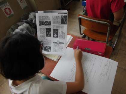 国語の時間に、自分が興味をもった仕事の「工夫」について調べています。