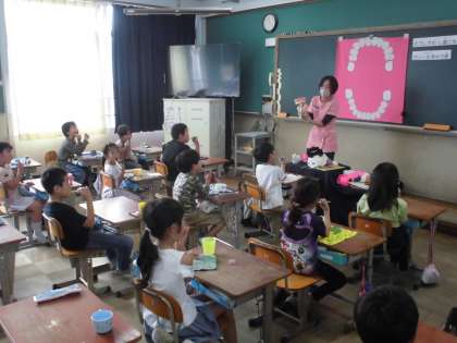 今日は歯科衛生士の方をゲストティーチャーにお招きして、歯磨きの仕方について教えていただきました。毎日しっかり歯を磨いて、いつまでもきれいな歯を保ちましょう!