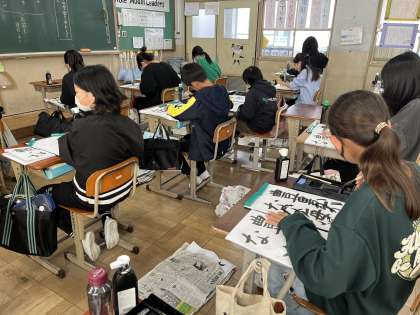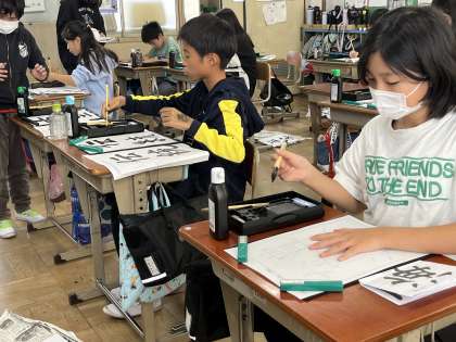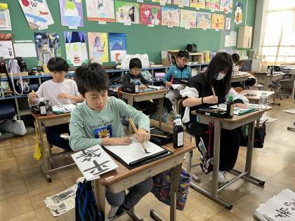 これまでの書写の学習とは違い、自分で書く言葉を決めて書いていきました。見本をよく見てとても集中して取り組むことができました。丁寧な字を書くためには良い姿勢が必要ですね。普段から続けていきましょう!