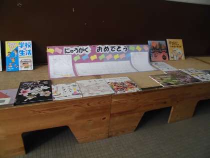 学校司書の新谷先生が、にじいろ図書館の準備をしてくれています。1年生向けのコーナーが充実しています。