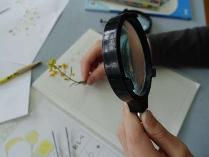 咲き終わりそうなアブラナの花や、実の観察を行いました。