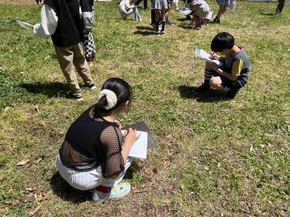 これまでは動かない春の植物を観察してきましたが、今回は動く生き物の観察に挑戦しました!足音を立てずに近づき慎重に観察していました。どんな特徴を見つけられたかな。