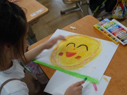 自分だけのおひさまを画用紙いっぱいに描きました。