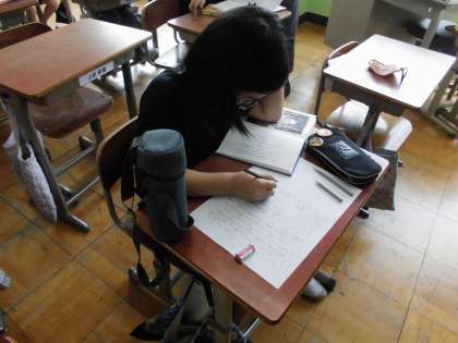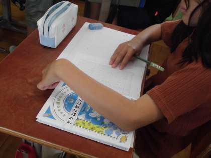 自分のおすすめする本を紹介するために、原稿づくりをしています。本の魅力を伝えるためにはどんな伝え方をすればいいのでしょうか。原稿ができた人はどんどん練習をしていきましょう!