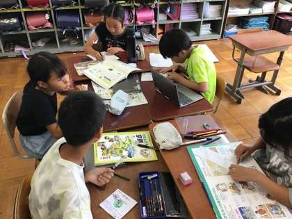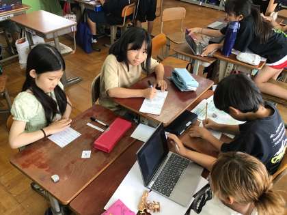 グループで割り付けなどを分担し、新聞を作りました。テーマは社会で学習をした、「わたしたちのくらしと水」です。だれがどんな記事を書くか、どんな絵や写真を付け加えようか、新聞の名前はどうしようか。グループで相談しながら作成することができました。