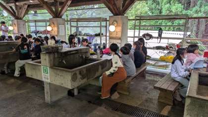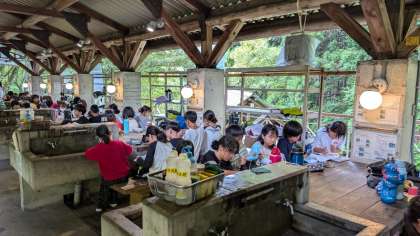 野外炊事場で、三日間のふり返りをしました。