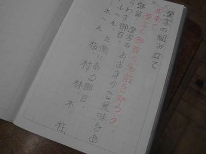 国語の時間に、漢字の組み立てについて学習しました。「きへん」の漢字をたくさん集めて、部首の意味や文字の組み立てなどをみんなで考えました。