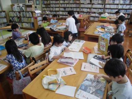 1年生は図書室に行き、自分たちが好きな本を選んできました。もうすぐ読書週間です。色々な本に触れて、自分の世界を広げていってもらいたいです。