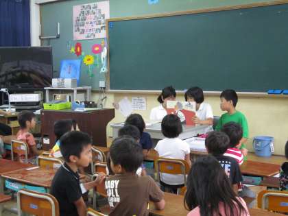 1〜4年生の教室に行き、本の読み聞かせをしました。