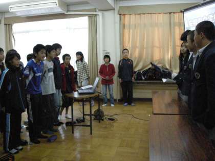 安祥寺中学校に通う西野小学校卒業生11名が学校紹介に来てくれました。楽しい紹介に中学校への不安もふっとびました。
