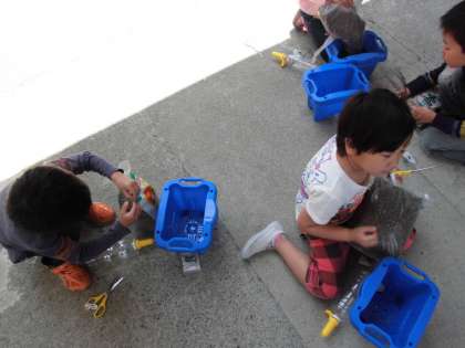 土を自分たちで入れ,種をまき,追肥もかけました。