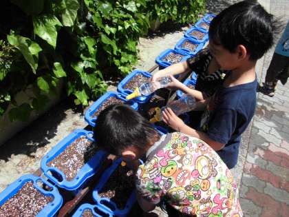 昨日,あさがおの種まきをしました。