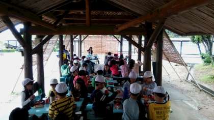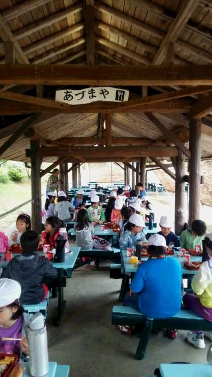 あずまやで朝食です。
