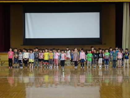 5月20日(火)の3校時に,児童会が中心となって『1年生を迎える会』を行いました。1年生は6年生と手をつないで入場しました。