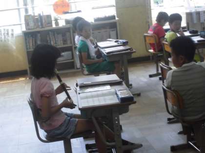 3年生になってからはじめたリコーダーも,だいぶん慣れてきました。タンギングはなかなかですが,がんばっています。まだ,指が小さいので,穴がうまく押さえられないかな?