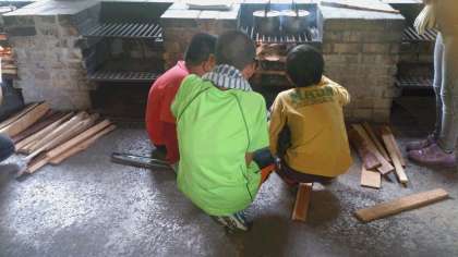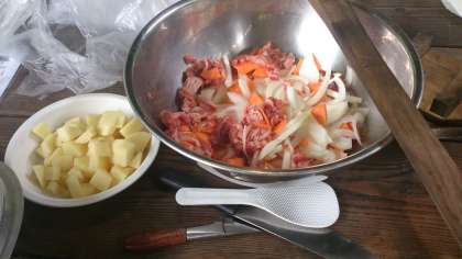 野外炊事。