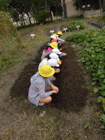 生活科の学習で,秋から育てる野菜の種をまきました。