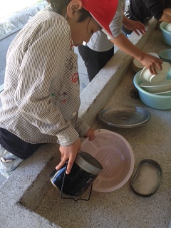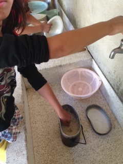 米を研いでいます。水の量もバッチリ大事な役割を担ってます💦