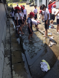 足を洗い流している様子です。