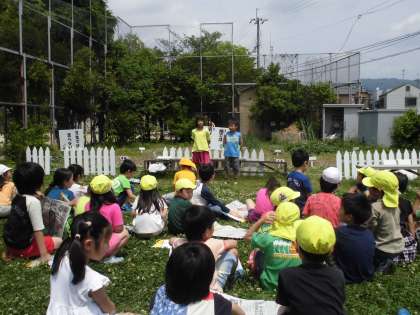 山階保育園の年長さんといっしょに,サツマイモのなえを植えました。