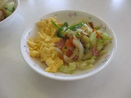 「野菜いため」と「いり卵」をつくりました。