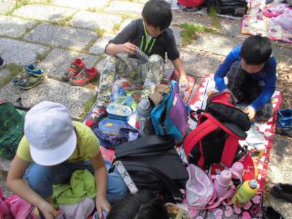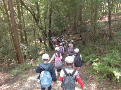 お弁当は,将軍塚の山頂で食べました。将軍塚からは京都タワーが見えました。お昼を食べた後は,山道を下って帰りました。
