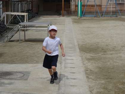 つくし学級では,体力を付けるために,担任の先生といっしょに,毎朝グラウンドを5周ほど走っています。男の子はどんどん自分のペースで走っています。女の子も元気です。