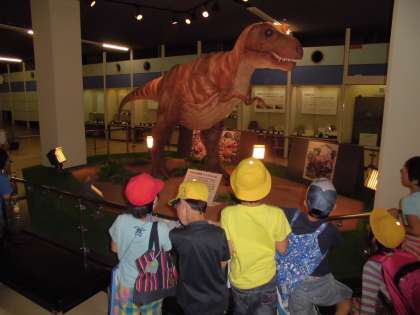 恐竜のお出迎えがうれしそうでした。