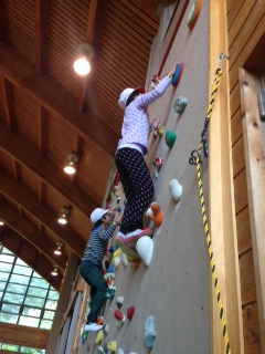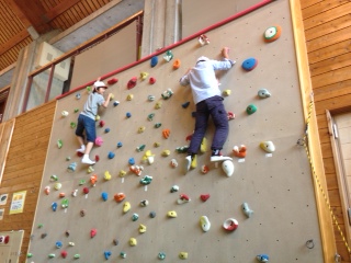 まずは、3mのボルダリングからスタートしています。みんな、初めてとは思えないくらい、器用に手足を使いこなして登ってます‼︎
