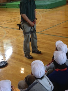 装着装備品の説明を受けてます。