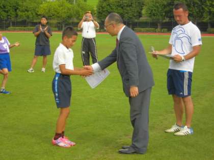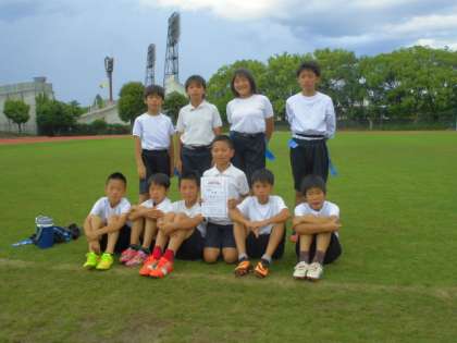 昨日、西京極陸上競技場補助グラウンドにおいて「第8回京都府小学生タグラグビー選手権」が開催されました。西野小学校はA・Bの2チーム編成で参加しましたが、Aチームは順調に勝ち進み、決勝戦に進出。決勝戦は、強豪の勧修小学校との対戦になりました。前半開始から相手ゴール前に攻め込むものの、相手の固いディフェンスに阻まれトライを奪えず、0−4でリードを許しました。後半、粘りを見せて2トライを返しました。結果は2−5の惜敗でしたが最後まであきらめず全力を尽くしてくれました。今後の成長が楽しみです。また、当日はお忙しい中、多数のご声援をいただき誠にありがとうございました。