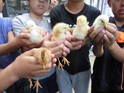 低学年の子ども達にも大人気です。5,6年の飼育委員は大忙しですが,みんなヒヨコのことをとても大事にしてくれて,がんばって世話しようとしています。どんな名前になるのかな?