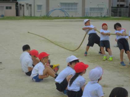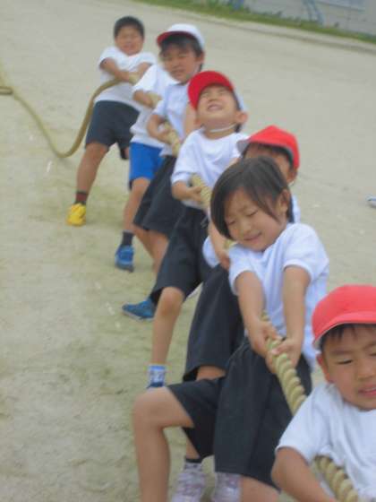 ただ単に綱を両手で引っ張るだけでは勝てません!ルールで決められた人数の「力」を最大限に発揮できるための「技術」とチームワークを高めるための「掛け声」など・・・