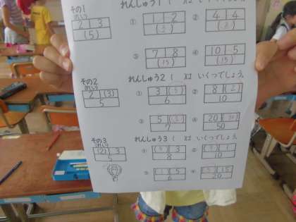 掃除の後は、10分間の「チャレンジタイム」です。教室を覗くと自分で解いた算数のプリントを声を合わせて○付けをやっていました。問題の数もそんなに多くはありませんが、「繰り返し」と「積み重ね」で力をつけていってほしいものです。