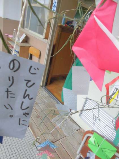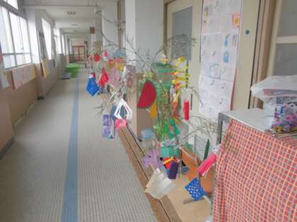 つくし学級前の廊下には「七夕かざり」が飾られています。
