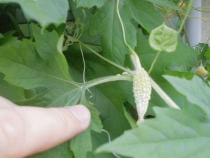 また、珍しい品種の「白ゴーヤ」もようやく実をつけました。