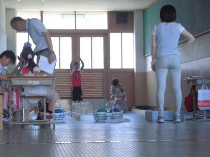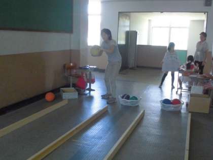 わずかなスペースを活用してます。教頭先生も投げ終わったようです。