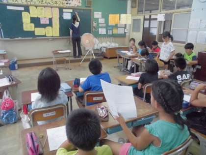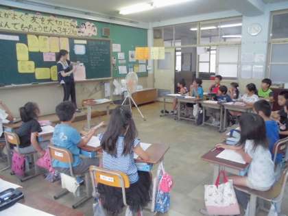今日の3時間目は,3年2組に栄養教諭の平野先生に来ていただきました。早寝早起きや朝ごはんをしっかり食べることの大切さについて指導してもらいました。